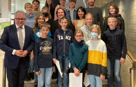 Zur Würdigung der geleisteten Arbeit und der damit errungenen Auszeichnungen, wurden die beteiligten Schülerinnen und Schüler vom Mitglied des Landtags Guido Wolf in das Stuttgarter Landesparlament eingeladen, wo sie nochmal für ihr Projekt werben konnten. Im Anschluss an die Teilnahme an einer Landtagsdebatte und an eine Hausführung wurde die Fahrt nach Stuttgart durch den Besuch des Landwirtschaftlichen Hauptfests in Bad Cannstatt abgerundet.