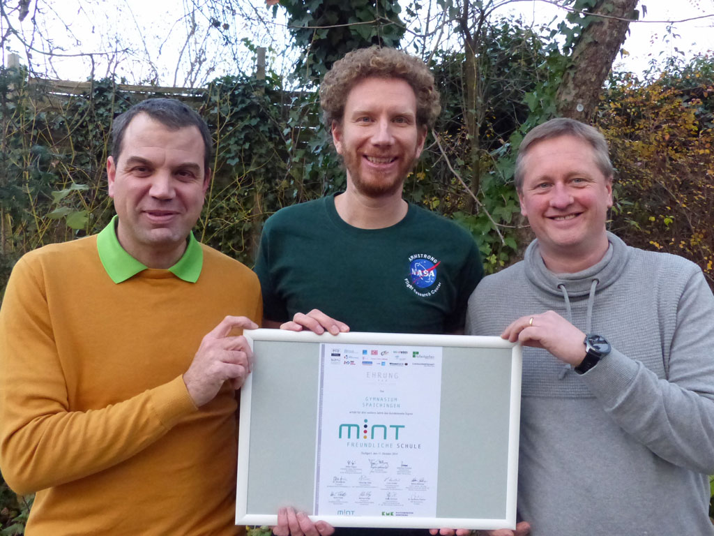 Für das Spaichinger Gymnasium ist es bereits die vierte Zertifizierung zur „MINT-freundlichen Schule“ nach 2012, 2015 und 2018. Insbesondere die beiden Lehrer Manuel Vogel und Hendrik Schwarz setzen sich für die Förderung des MINT-Bereichs im Unterricht und in verschiedenen Arbeitsgemeinschaften ein und haben an der erneuten Auszeichnung großen Anteil.