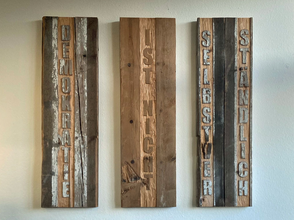 „Demokratie ist nicht selbstverständlich“ steht auf drei Holzstelen, die seit letztem Herbst im Sitzungssaal des Spaichinger Rathauses hängen. Die Worte erinnern die gewählten Frauen und Männer des Gemeinderats an die Verantwortung, die sie bei ihren Beratungen und Beschlüssen tragen. Und die Worte erinnern an eine Zeit, in der in Spaichingen und ganz Deutschland keine Demokratie, sondern eine menschenverachtende Diktatur herrschte. Denn das Holz, auf dem die Worte stehen, stammt von einer Baracke des Konzentrationslagers Spaichingen.