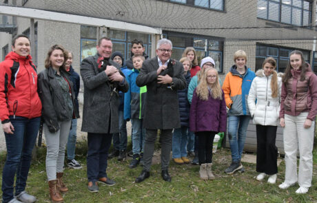 Nachdem die SchülerInnen der Hühner-AG zur Würdigung ihrer Leistungen beim BundesUmweltWettbewerb (Hauptpreis) und dem Landestierschutzwettbewerb (1. Platz) in den Landtag nach Stuttgart eingeladen waren, kam nun unser Landtagsabgeordneter Guido Wolf zum Gegenbesuch nach Spaichingen. Mit dabei war auch unser Bürgermeister Markus Hugger.
