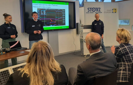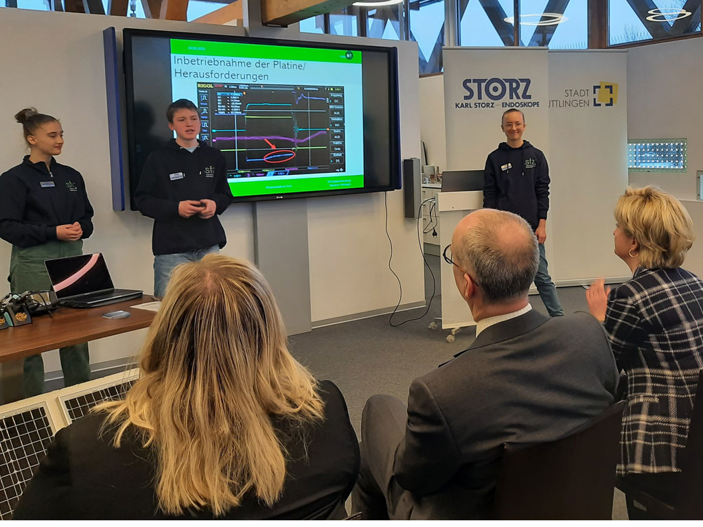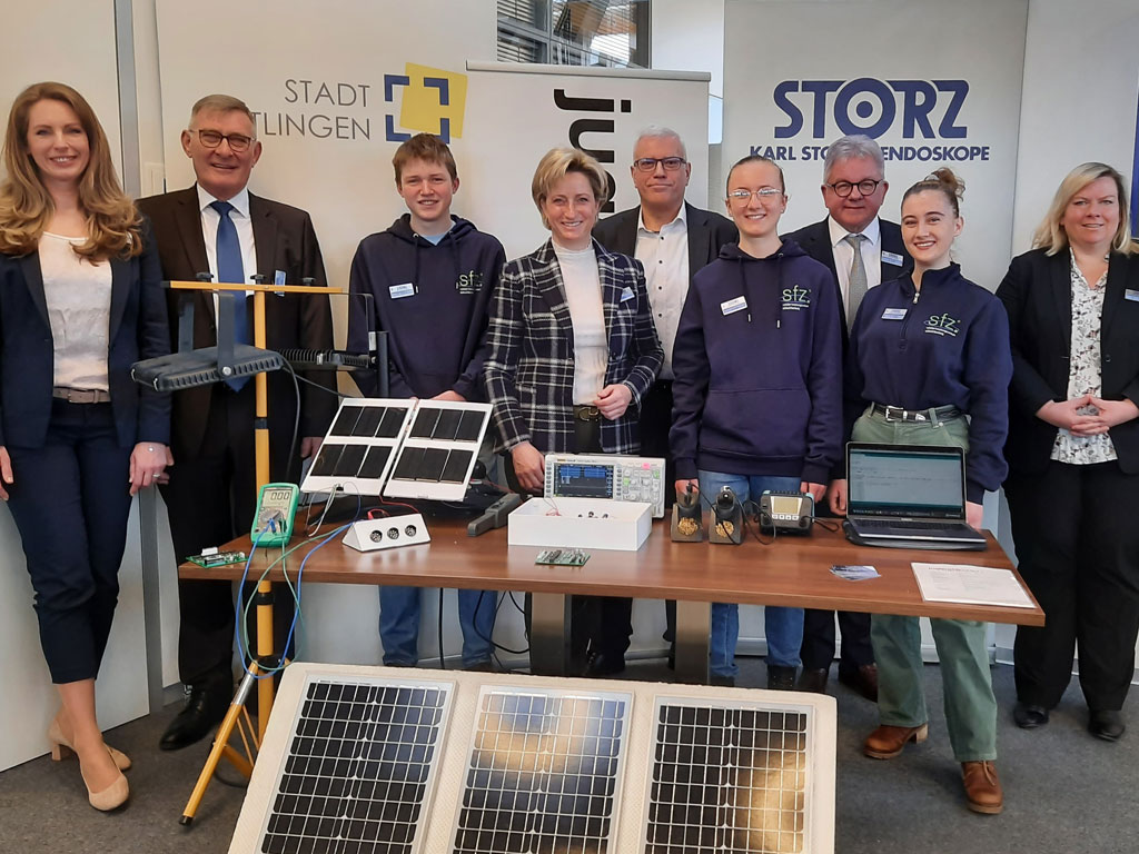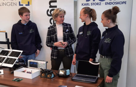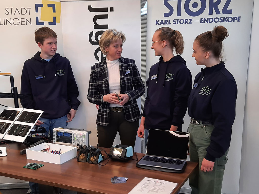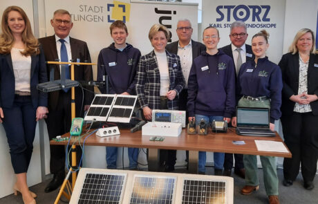 Zur Auftaktveranstaltung Jugend forscht des Regionalwettbewerb Donau-Hegau durften Babett Ludwig und Stefanie Eski vom Gymnasium Spaichingen ihr Forschungsprojekt, welches sie gemeinsam mit Florian Brütsch vom Otto-Hahn-Gymnasium Tuttlingen umgesetzt haben, der Wirtschaftministerin Nicole Hoffmeister-Kraut, der Bundestagsabgeordnete Maria-Lena Weiss, dem Landtagsabgeordneten Guido Wolf und dem Tuttlinger Oberbürgermeister Michael Beck vorstellen.