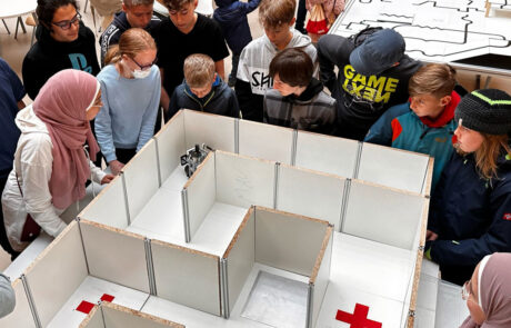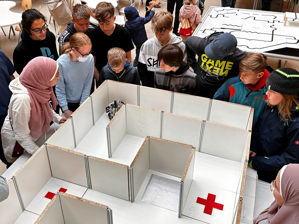 In dieser Kategorie müssen die selbstentwickelten und -programmierten Roboter autonom mittels Abstandssensoren durch ein Labyrinth finden und dabei Hindernisse meistern, Markierungen an den Böden über Farbsensoren erkennen, an denen sie selbstständig sogenannte Rescue Kits ablegen müssen, und das alles bestenfalls ohne Fehler. Hier überzeugten die beiden Geschwister vom Gymnasium Spaichingen mit ihrem Roboter als souveräne Erstplatzierte.