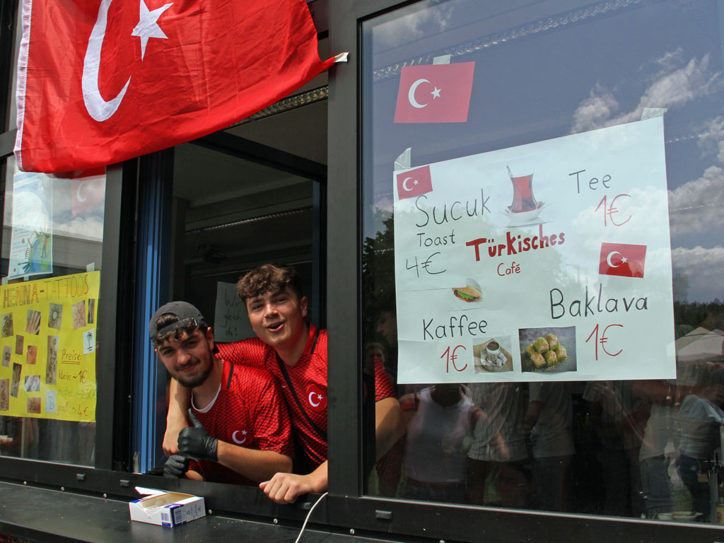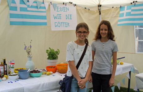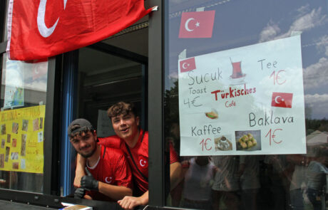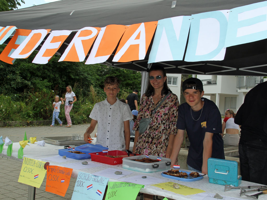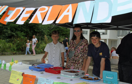 Kulinarische Köstlichkeiten gab es etwa am griechischen Salatbuffet, im türkischen oder im rumänischen Café. Oder die Besucherinnen und Besucher konnten sich an niederländischen Cookies, belgischen Waffeln oder finnischem Gebäck namens „Ohrfeigen“ laben. Und im Steinbackofen der Schule wurden französische Flammkuchen wie am Fließband gebacken – insgesamt 140 Stück.