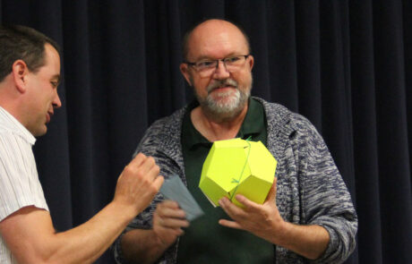 Am Ende des Schuljahres konnte Jürgen Pach auch zwei Lehrern des Gymnasium zu ihrem 25-jährigen Dienstjubiläen gratulieren: Matthias Klinger, Lehrer für katholische Religion, Latein und Spanisch sowie Dr. Markus Ziegler, Lehrer für Physik und Naturwissenschaft und Technik sind jeweils seit einem Vierteljahrhundert im Schuldienst des Landes Baden-Württemberg.