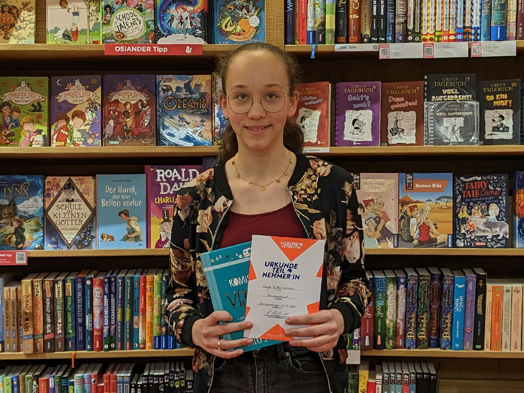 Die besten Vorleserinnen und Vorleser des Bezirkes Freiburg kamen am ersten Feriensamstag in der Osiander-Buchhandlung in Donaueschingen zusammen. Auch unsere Schülerin Nayla Haberkorn hatte sich für diese vorletzte Runde vor dem Bundesfinale in Berlin qualifiziert.