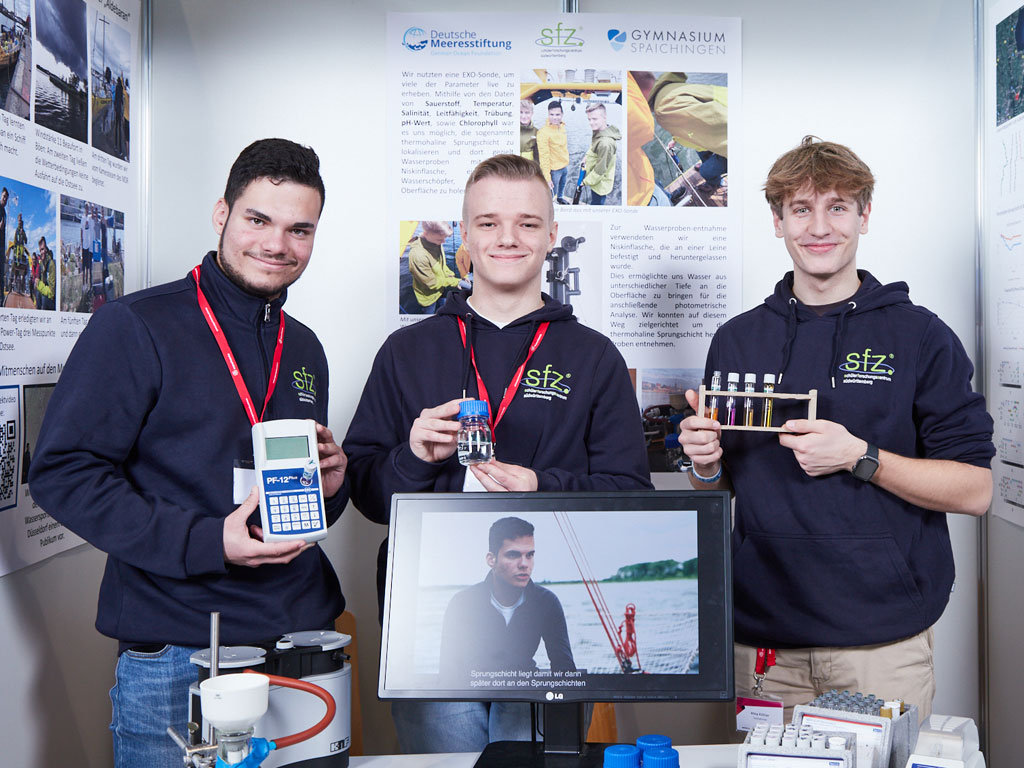 Linus Gäckle, Mika Köhler und Damian Saramaga (alle Jahrgangsstufe 12, Gymnasium Spaichingen) traten mit ihrem Projekt „Global Change ahoi! – Erfassung umweltrelevanter Wasserparameter in der Lübecker Bucht“ im Landesfinale Jugend forscht in der Sparte Arbeitswelt in Freiburg an. Die drei hatten bei einem einwöchigen Forschungsaufenthalt auf dem Forschungsschiff Aldebaran der Deutschen Meeresstiftung Sauerstoffkartierungen und die Erfassung von Schadstoffen in der Lübecker Bucht, vor allem an der thermohalinen Sprungschicht, vorgenommen.