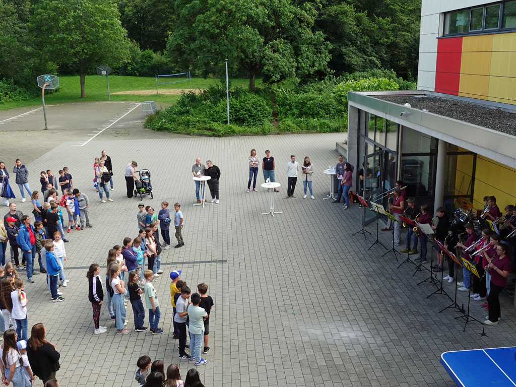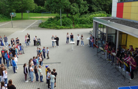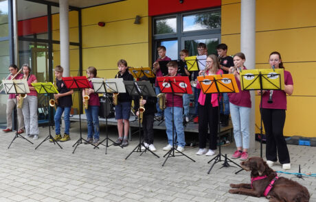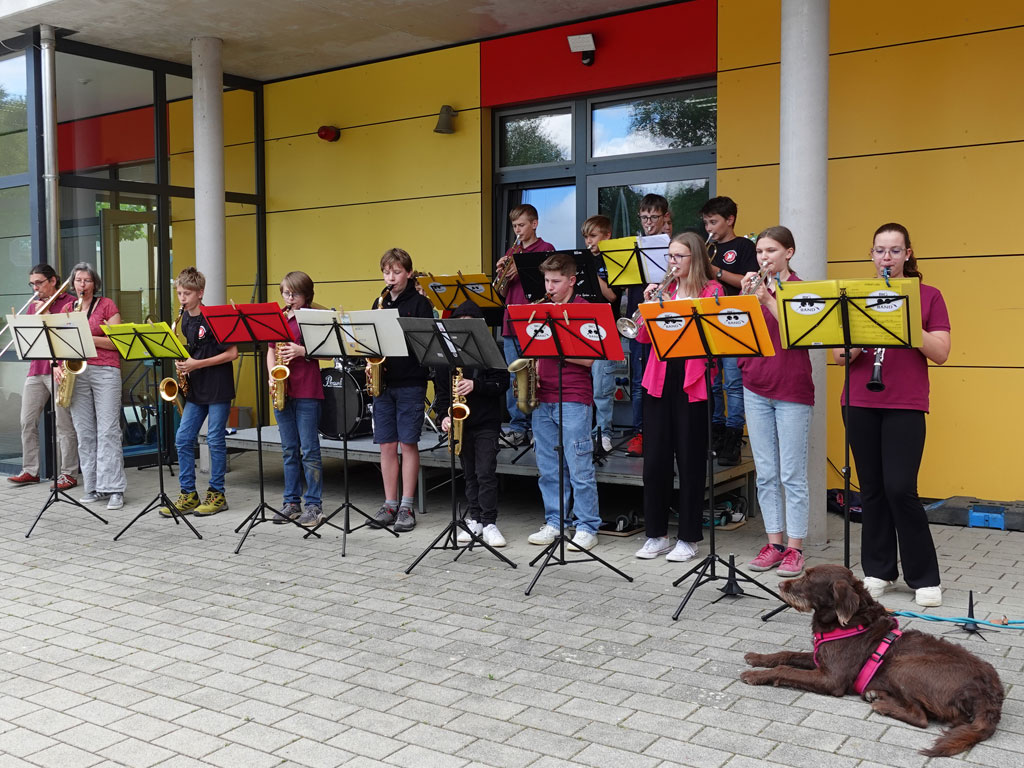 Buchstäblich mit Pauken und Trompeten wurden am Donnerstag, 4. Juli, die künftigen Fünftklässler am Gymnasium Spaichingen begrüßt: Die Bigband des Gymnasiums spielte im Pausenhof für die Jungs und Mädchen, die zum Kennenlerntag an die Schule gekommen waren.