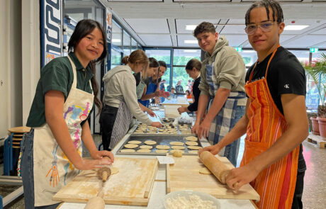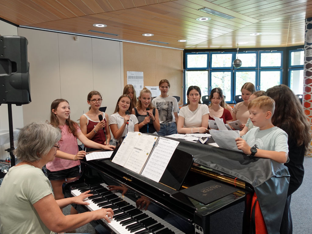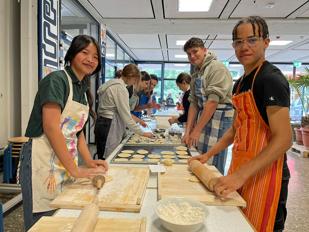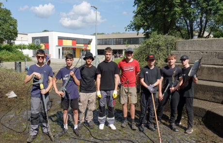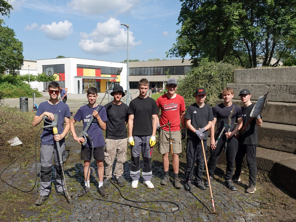 Andere blieben an der Schule. Das Projekt „Tierheimbäckerei“ etwa nutze den Holzbackofen im Pausenhof, um leckere Pizzen und andere Köstlichkeiten zu backen, deren Verkauf dem Tierheim zu Gute kam. Weitere Projektgruppen übten ein Musical oder einen Showtanz ein oder lernten wie man einen eigenen Song komponiert und textet. Beim Projekt „Reinigen mit Hochdruck“ wurde hart gearbeitet und unter anderem das Rondell im Pausenhof mit Hilfe von Hochdruckreinigern von hartnäckigem Dreck befreit.