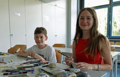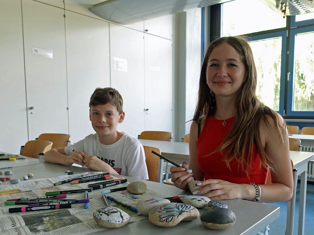 Auch viele schöne Dinge entstanden während der Projekttage: Künstlerisch und bunt bemalte Steine, Blumenampeln in Makramee-Technik oder schicke, selbstgenähte Freibadtaschen. Und es wurde ausgiebig gespielt: Skat und Bettspiele beispielsweise. Eine Projektgruppe ging ins Altersheim, um dort mit älteren Menschen zu spielen und ihnen eine Freude zu bereiten.