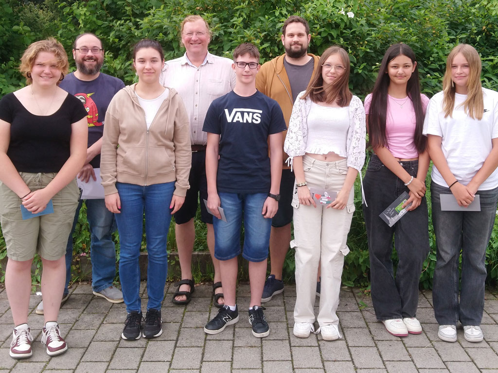 So konnten beispielsweise Livia Girke und Lea Molnar aus der 6. Klasse mit ihrem Podcast über die dynamische Verbreitung von Gerüchten innerhalb einer Klassengemeinschaft überzeugen und einen guten 2. Platz in ihrer Jahrgangsstufe belegen. Rebecca Horras und Lorena Zupan (7. Klasse) konnten mit ihrer gelungenen Kurzgeschichte „Der Traum“ die verschwimmenden Grenzen der Wahrnehmung von Realität und Illusion aufzeigen. Den 1. Platz für die Unterstufe belegte Matteo Waldheuer aus der 6. Klasse mit seiner Geschichte „Der Herr der schwarzen Diamanten“.
