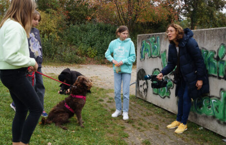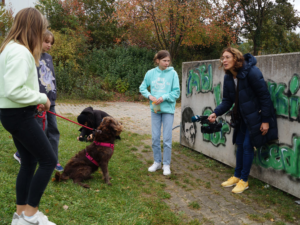 Gedreht wurde am vergangenen Mittwoch, als SWR-Redakteurin Luisa Klink und Kamerafrau Nina Keppeler das Gymnasium Spaichingen besuchten. Neben Schulhund Bibi sind auch Schulleiter Jürgen Pach und „Bibis Bande“ im Beitrag zu sehen und zu hören. „Bibis Bande“ sind Schülerinnen und Schüler der Klassenstufen fünf bis sieben, die in den Pausen mit Bibi spazieren gehen, mit ihr spielen und ihr den einen oder anderen Trick beibringen.