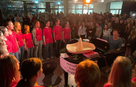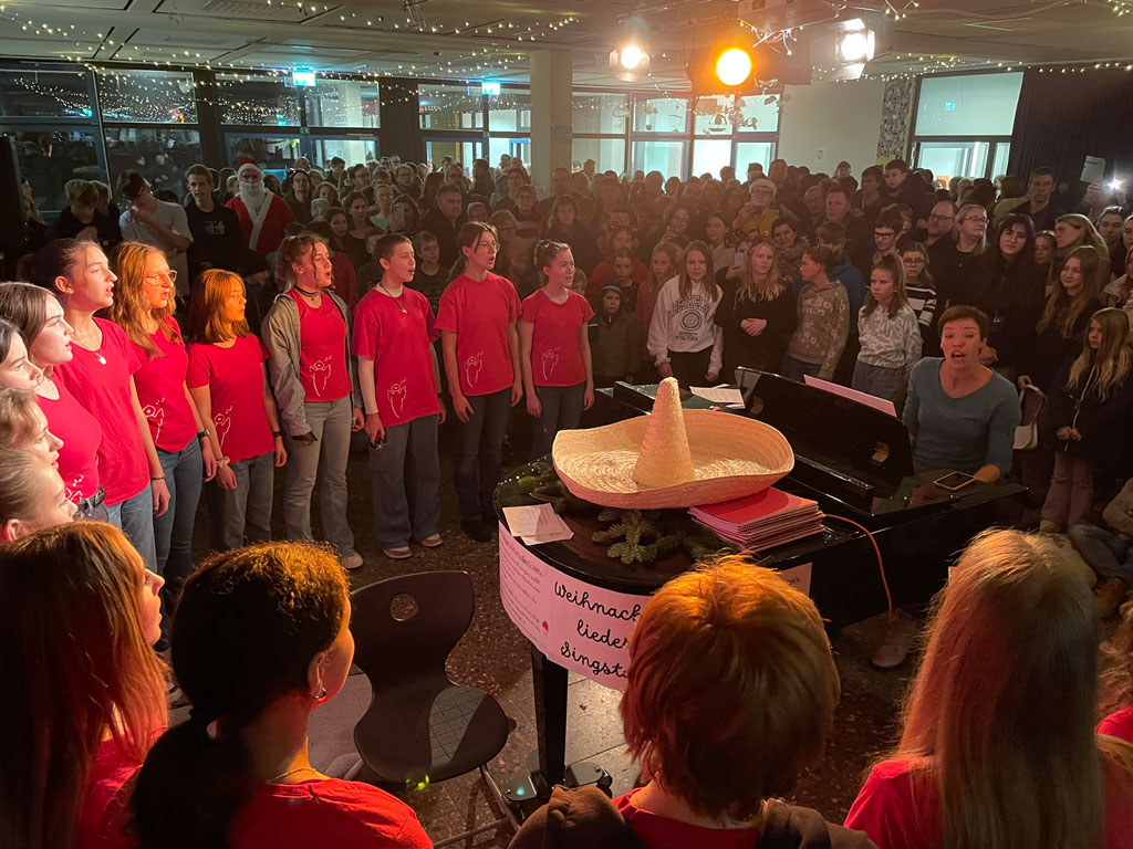 Für weihnachtlichen Sound sorgten die Musikensembles des Gymnasiums: die Bigband, die Chöre unter der Leitung von Musiklehrerin Miriam Wolff und die Lehrerband.