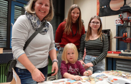 Zudem gab es für die Besucherinnen und Besucher viele Möglichkeiten, selbst aktiv zu werden: Sie konnten Weihnachtskarten oder ein Tik-Tak-Toe-Spiel basteln, Pralinen füllen, eigene Kekskreationen herstellen, Weihnachtslieder singen, Dosen abwerfen oder an der Fotowand vor einer stimmungsvollen Kaminzimmer-Kulisse Aufnahmen machen.