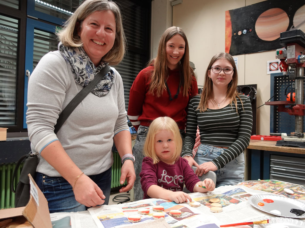 Auch wer noch auf der Suche nach Weihnachtsgeschenken war, wurde fündig: Schülerinnen und Schüler boten selbst gemachte Holzarbeiten, Tischsets oder Lichtgläser an. Kunstlehrerin Annegret Eddahbi hatte Christbaumschmuck, Seifenschalen, Kettenanhänger und Engel modelliert, glasiert und gebrannt.