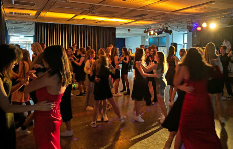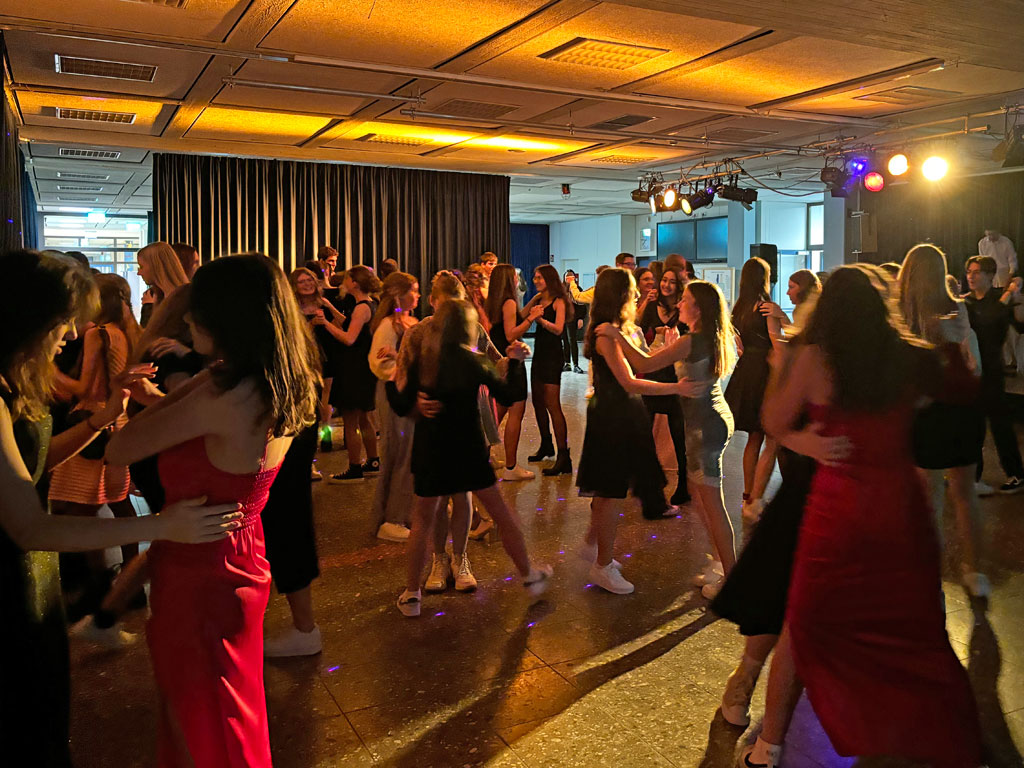 Direkt zu Beginn des neuen Jahres wurde kurzerhand das Foyer des Gymnasiums Spaichingen zu einem Winterball umgestaltet. Hierbei hatten die Schülerinnen und Schüler aus der 8. bis 12. Klasse nicht nur Spaß, sondern konnten auch Tanzschritte fürs Leben lernen. Hand in Hand haben Schülerinnen und Schüler unter Anleitung von Frau Möckel und Herrn Rieber Tänze, wie den Cha-Cha-Cha und Diskofox, gelernt. Nicht nur für die Tanzenden, sondern auch für alle Tanzmuffel ein tolles Erlebnis, denn untermalt wurde die Veranstaltung durch musikalische Hits, aufwändiger Dekoration und passendem Catering. Anschließend an den schuleigenen Tanzkurs konnten dann unsere „Großen“ ihre Energie und Freude auf der Tanzfläche ausleben und zu angesagten Hits tanzen.