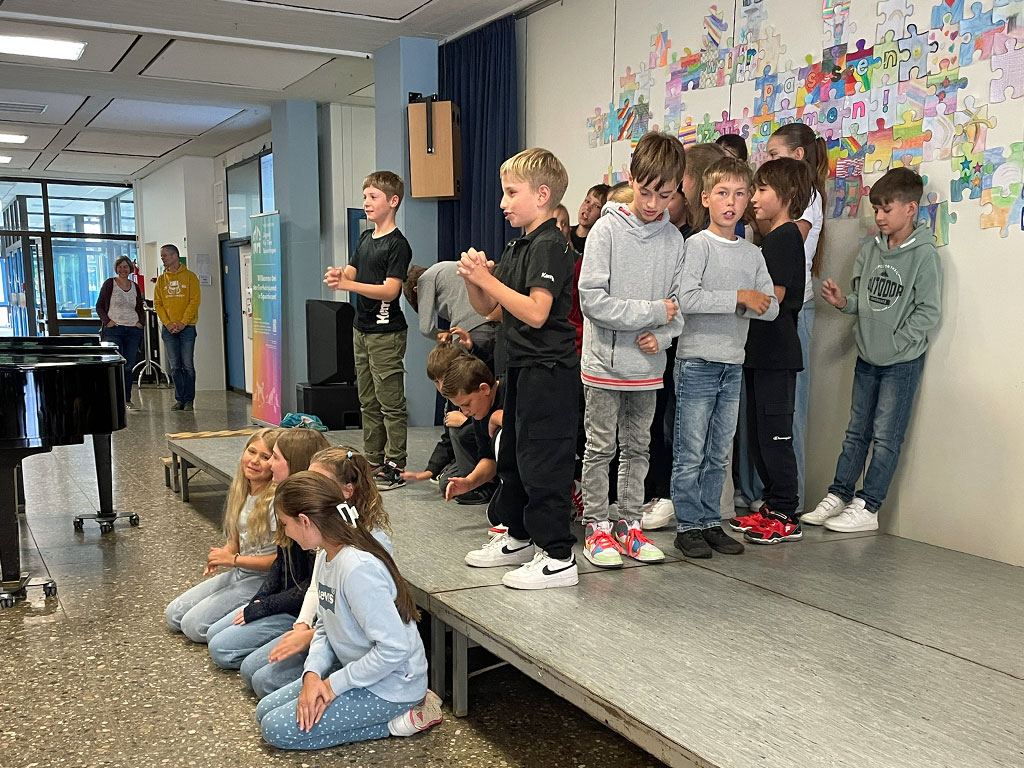 103 Mädchen und Jungs sind in diesem Schuljahr neu ans Gymnasium Spaichingen gekommen. Am Ende ihrer ersten Schulwoche wurden die neuen Fünftklässlerinnen und Fünftklässler von Schulleiter Jürgen Pach in der Aula begrüßt. Zu ihrer Aufnahmefeier, bei der zahlreiche Eltern und Angehörige anwesend waren, steuerte jede der neuen fünften Klassen einen eigenen Programmpunkt bei. Das Motto der Feier lautete: „Wir passen gut zusammen“.