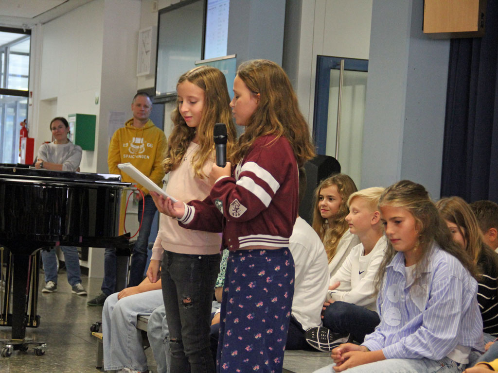 Eingeübt hatten die neuen Fünfer ihre Programmpunkte mit ihren Klassenlehrerinnen und Klassenlehrern Christoph Timm und Julia Schwarz (5a), Rüdiger Schreiber und Jennifer Roming (5b), Christian Jülg und Linda Schneeberger (5c) sowie Ulrike Schwarz und Silvia Horn (5d).
