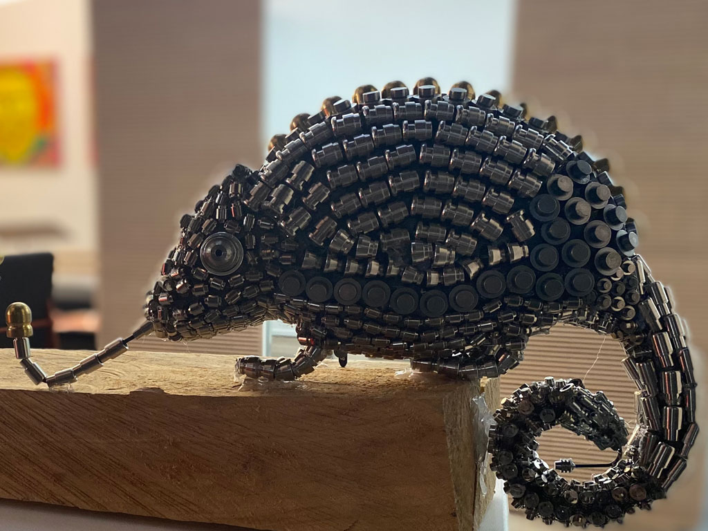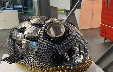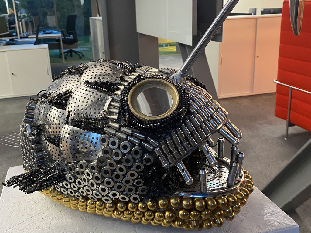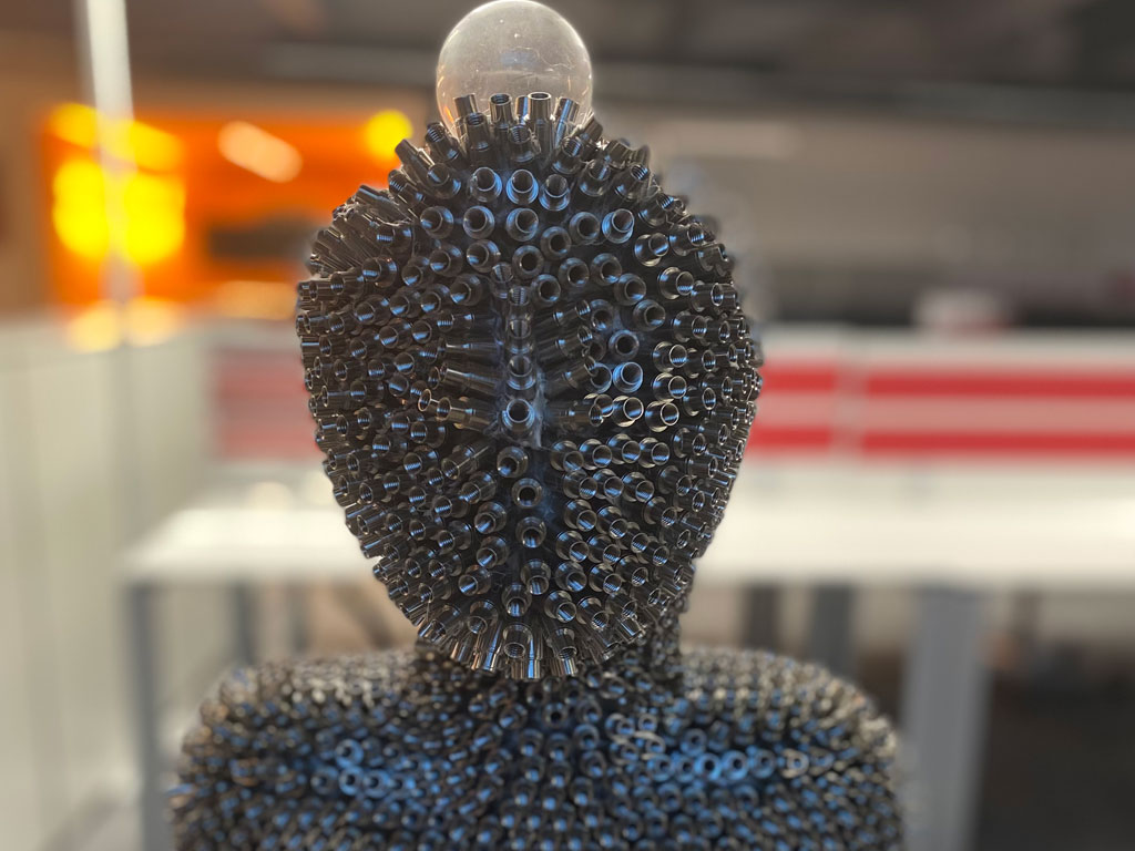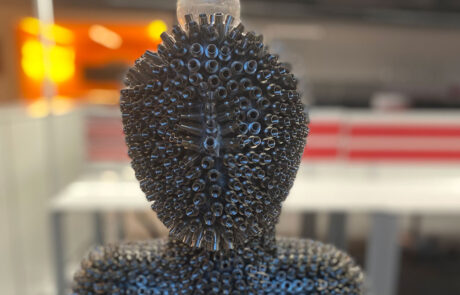 Die Idee stammte von der kunstbegeisterten Gesellschafterin Susanne Roth. In Absprache mit einigen Kunsterzieher*innen der Region lieferte sie den Klassen Drehteile aus der Produktion, aus denen die Kinder Kunst machen durften. Die Jugendlichen des Gymnasiums Spaichingen waren begeistert, weil sie durch die Metallteile ganz neue Techniken ausprobieren konnten und sich ihnen neue Perspektiven boten. Denn es gibt Bezüge der Schule zur wirklichen Welt, wo ihre Eltern arbeiten. Kunstlehrerin Annegret Eddahbi unterstützte sie bei künstlerischen Entscheidungen und technischen Herausforderungen.