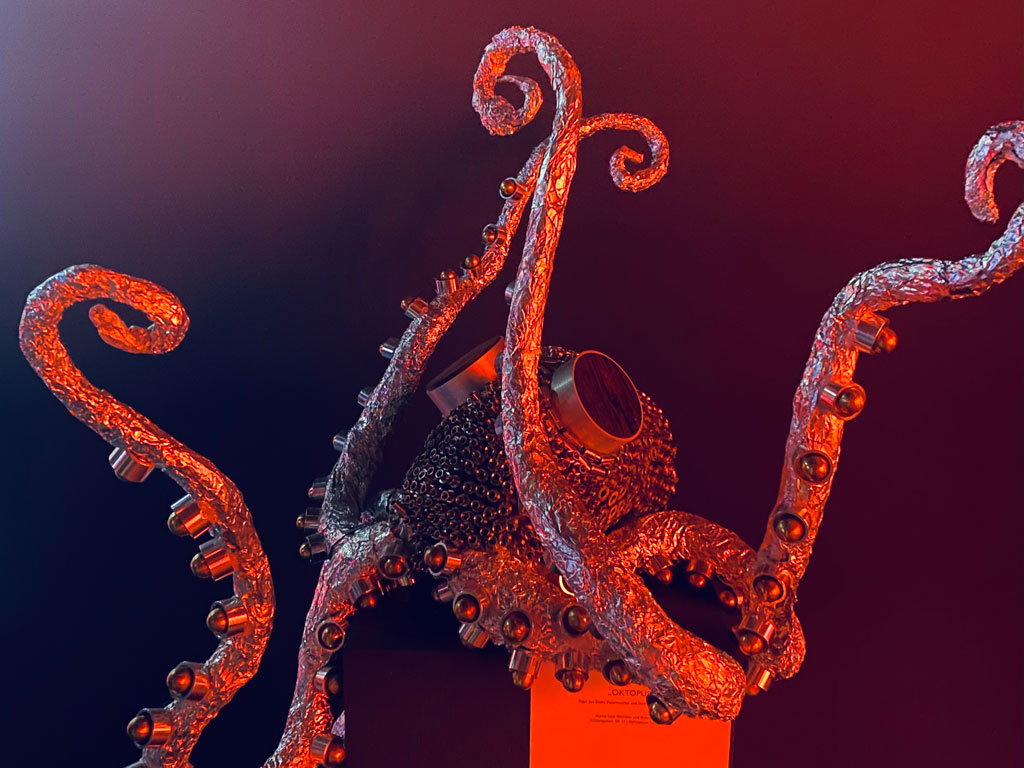 Eine laue Septembernacht auf dem Heuberg. Alles ist still. Nur in Bubsheim fahren am 20.9.24 viele Autos ein, um vor der Firma GERO zu parken. Das Gelände ist rot beleuchtet, die Lettern „Art Night“ werden auf das Fabrikgebäude projiziert. Als sich das Fabriktor zur riesigen Lagerhalle öffnet, strömen viele Gäste, Mitarbeitende der Firma mit ihren Familien, Kinder und Jugendliche verschiedener Schulen ein. Dort eröffnet sich allen etwas ganz anderes als eine normale Drehteilefirma: Überall sind Bildschirme und Projektionswände aufgehängt, die Filme über das Projekt A.K.T. (Aktion. Kunst. Technik) zeigen und digitale Bildbearbeitungen, bei denen Drehteile der Firma GERO künstlerisch verfremdet wurden. Große Gitterboxen sind aufgetürmt, an denen Reliefs aus Drehteilen hängen und in denen dreidimensionale Plastiken aus Drehteilen wirkungsvoll präsentiert werden. In den Produktionshallen und im modern gestalteten Verwaltungstrakt, dem Open-Space-Büro, stehen Podeste, auf denen verschiedenste Schülerarbeiten des Gymnasiums Spaichingen gezeigt werden, die den Drehteilen eine neue Funktion und eine wunderbare Ästhetik verpassen. Auf der zweiten Art Night bei GERO wurde klar, was der Leitspruch der Firma meint:
