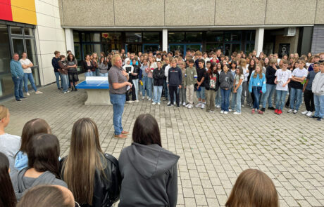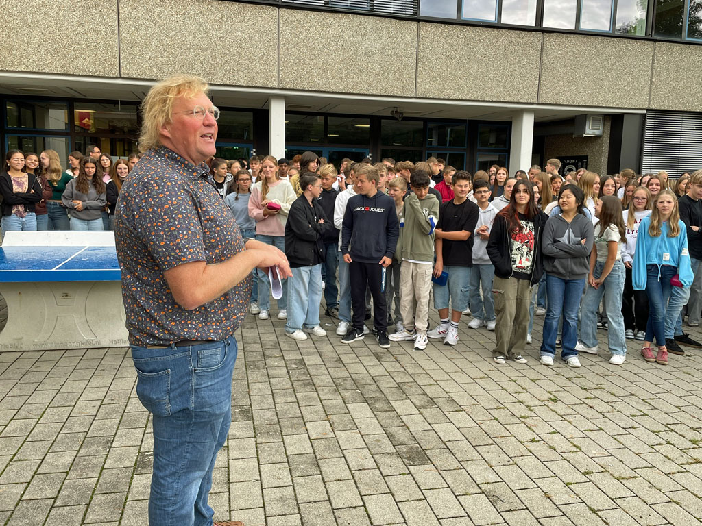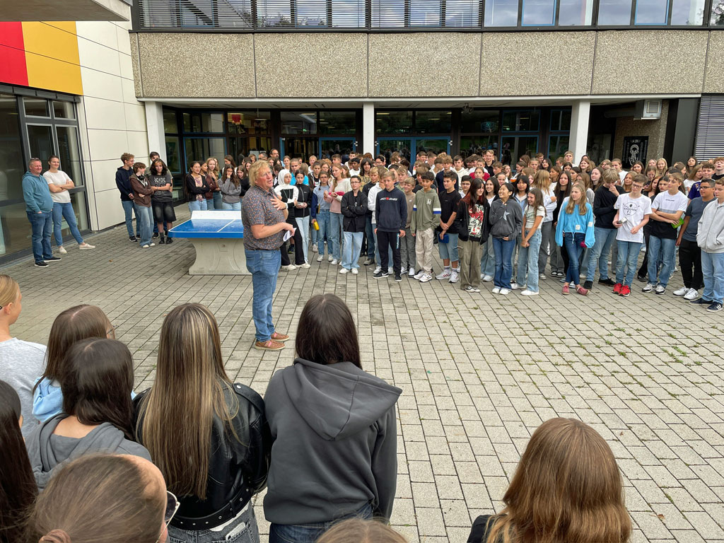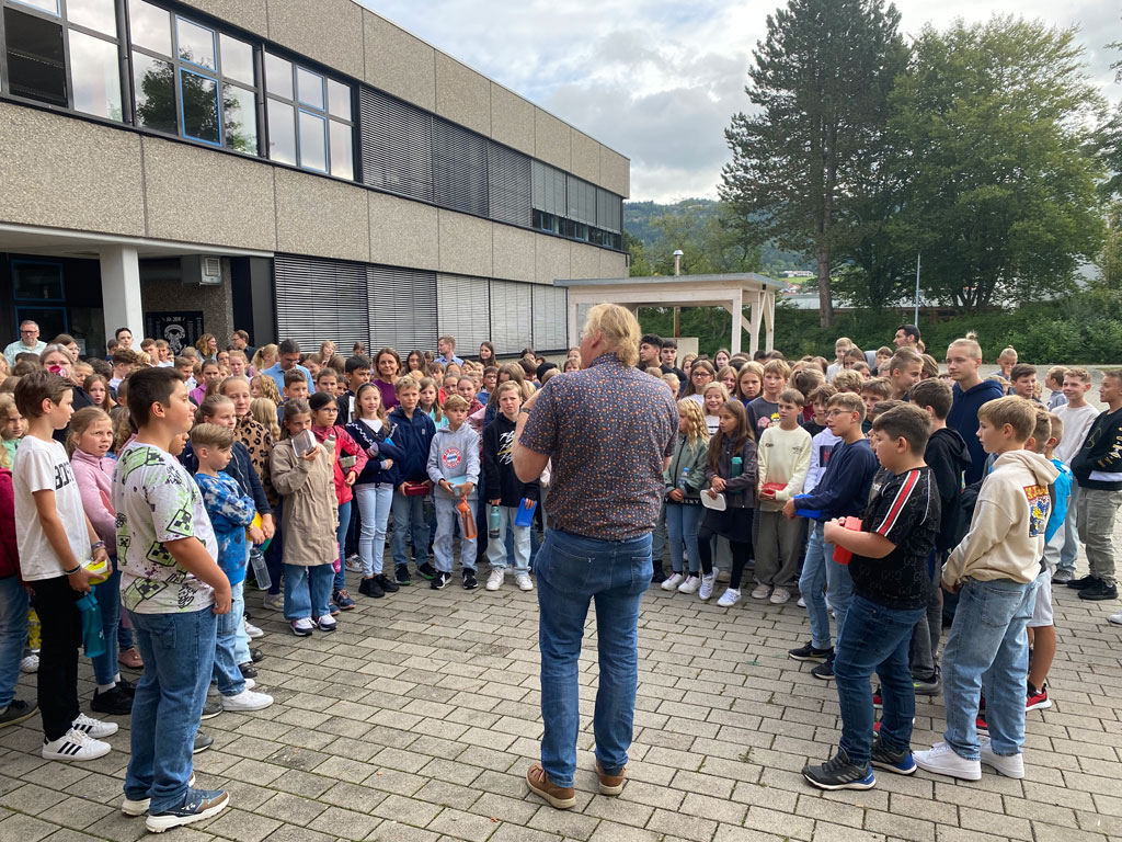 Am Gymnasium Spaichingen hat das neue Schuljahr begonnen. Schulleiter Jürgen Pach begrüßte die Schülerinnen und Schüler im Pausenhof und rief sie zu einem fairen Miteinander und gegenseitiger Akzeptanz auf. Rassistische und sexistische Bemerkungen dürften keinen Platz an der Schule haben, betonte der Schulleiter.