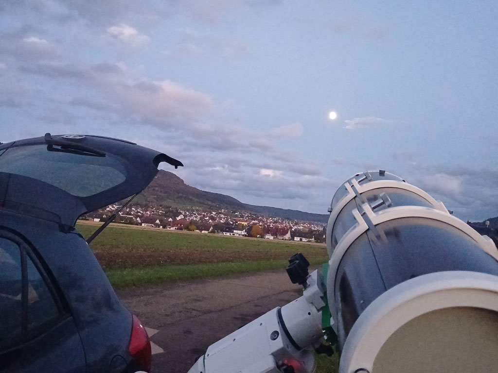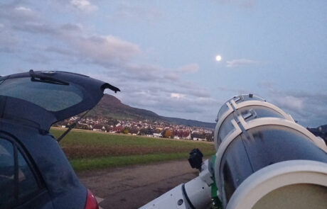 Am Montag, 14. Oktober, kamen die Teilnehmer des Astronomie-Wahlfachs des Gymnasiums Spaichingen zu einer besonderen Beobachtungsnacht auf dem Michelsfeld in Spaichingen zusammen. Mit großer Vorfreude richteten die Schüler das Teleskop auf den Nachthimmel, um den Kometen Tsuchinshan-Atlas, den Saturn und den Mond zu beobachten.
