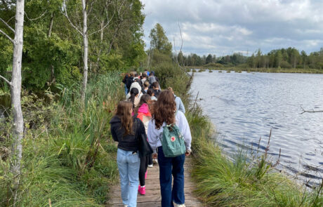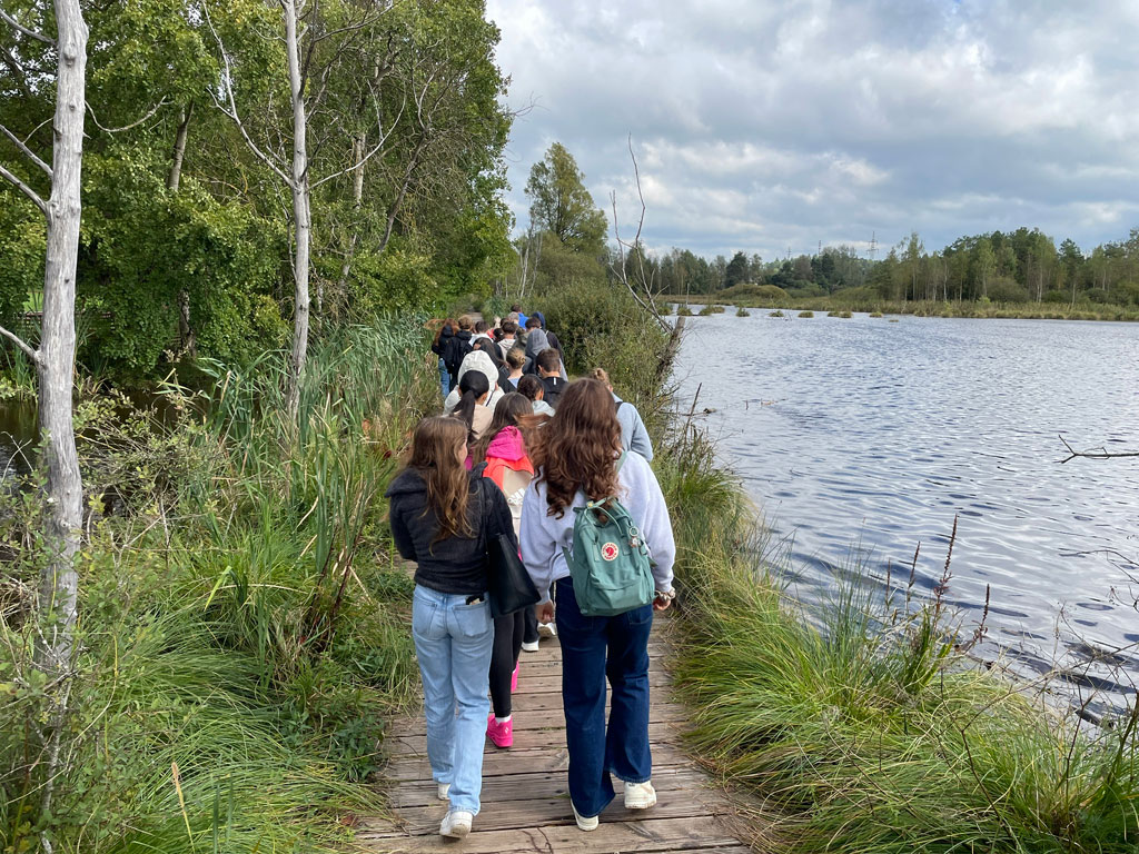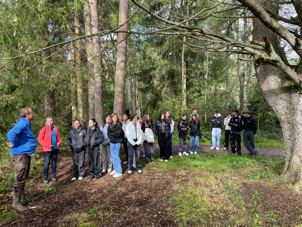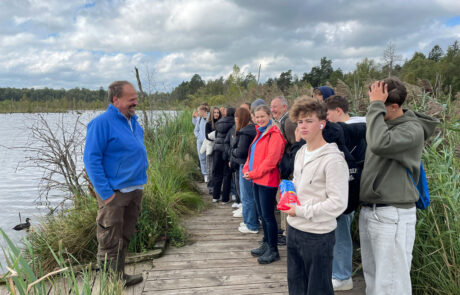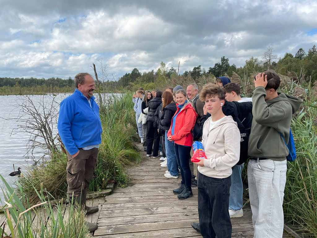 Andere zog es weiter in die Ferne. So fuhr die Klasse 10c samt ihrem Klassenlehrerteam mit dem Zug nach Schwenningen. Dort wartete Förster Michael Rüttiger an der Haltestelle Eisstadion bereits auf die Spaichinger und führte sie fachkundig durch das Naturschutzgebiet Schwenninger Moos.