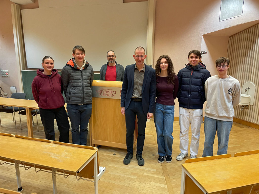Wenn ein Leistungskurs nicht zu groß ist, hat das auch Vorteile, beispielsweise, dass alle Schülerinnen und Schüler samt Lehrer in einen VW Touran mit ausgeklappten Notsitzen passen. So ging es kurz vor Weihnachten in die altehrwürdige Universitätsstadt Tübingen und zwar sehr früh, um 6.45 Uhr, damit man pünktlich zu Vorlesungsbeginn vor Ort war.