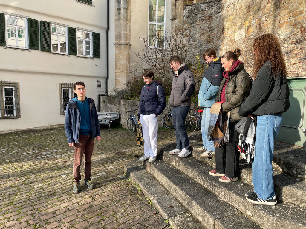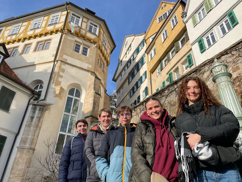 Zum Mittagessen waren die Gymnasiasten im Evangelischen Stift eingeladen, einem ehemaligen Augustinerkloster am Ufer des Neckars, wo seit dem 16. Jahrhundert evangelische Theologen und Theologinnen ausgebildet werden. In der Zeit bis zum Mittag zeigte LK-Lehrer Andreas Föhl, der einst in Tübingen studierte, seinen Schülerinnen und Schülern einige Sehenswürdigkeiten: Vom Kupferbau ging es über die Neue Aula durch den botanischen Garten zur Stiftskirche und schließlich zum Hölderlinturm. Anschließend erkundeten die Spaichinger die Stadt auf eigene Faust oder machten Besorgungen auf dem Weihnachtsmarkt.
