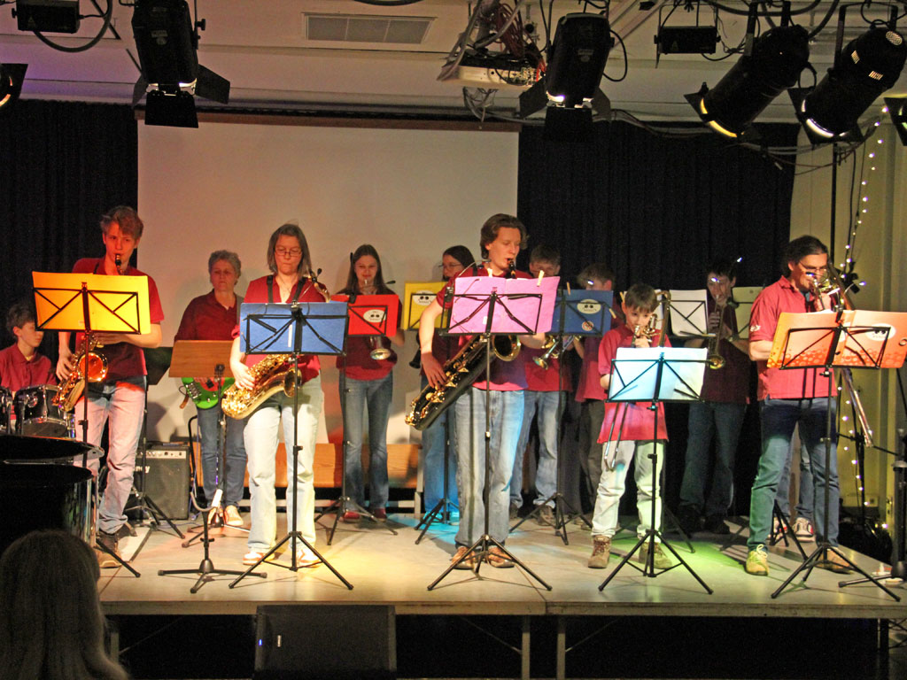 Gleich zu Anfang schickte die Bigband des Gymnasiums unter der Leitung von Musiklehrerin Ute Aippersbach das Publikum auf eine musikalische Reise mit drei Stationen. Zuerst ging es mit „Wizard Wheezes“ in die Zauberwelt Harry Potters, dann mit Herbie Hancocks Jazz-Klassiker „Cantaloupe Island“ auf eine einsame Insel und schließlich mit dem Hauptthema der Star-Wars-Filme in zukünftige, weit entfernte Galaxien.