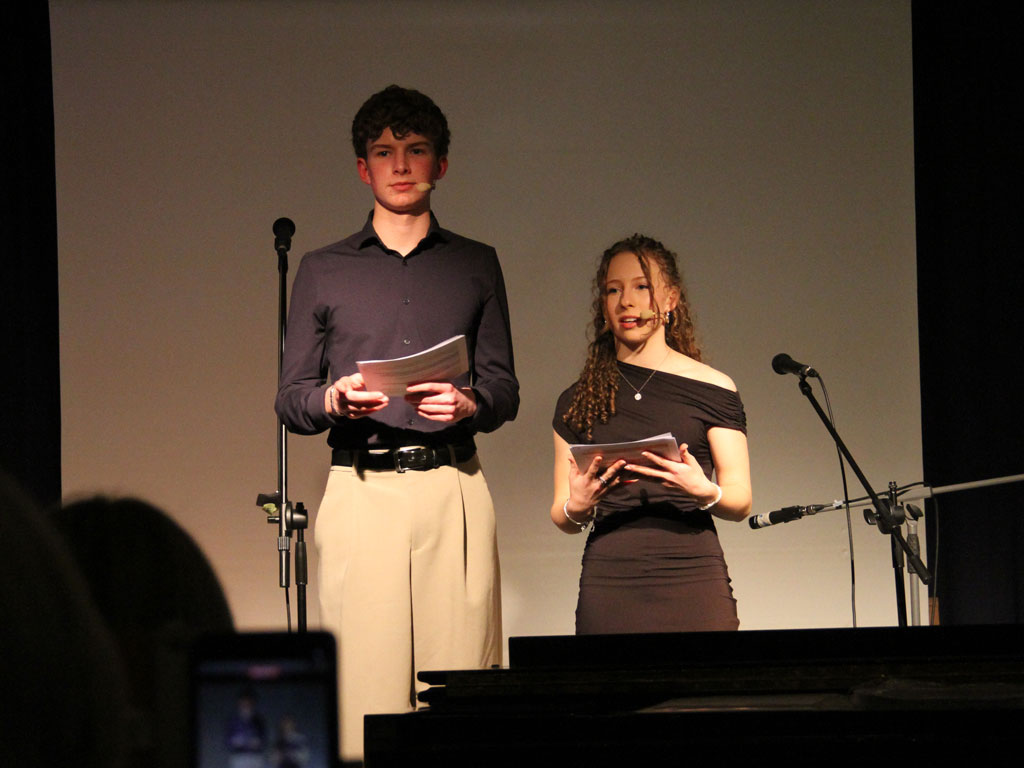 Reiseführerin und Reiseführer durch die „fremden Welten“ waren Julia Kopp und Luke Berner aus der Klassenstufe zehn. Die beiden moderierten charmant durch den Musik-und-Poesie-Abend, wussten Hintergründe zu den einzelnen Programmpunkten und warfen sich gegenseitig die Bälle zu.
