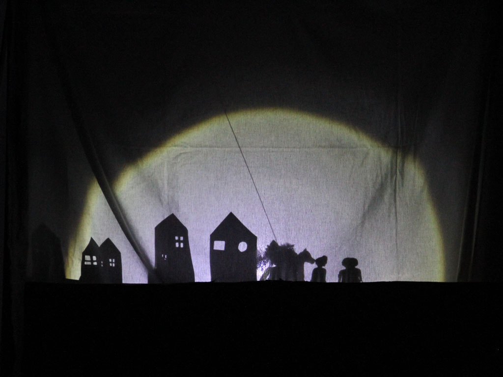 In die Welt der Märchen führte das Schattentheater der Klasse 5b. Illustriert durch das geheimnisvolle Spiel von Licht und Schatten, das Scherenschnitte auf eine Leinwand warfen, erzählten die Schülerinnen und Schüler die Märchen von der goldenen Feder und vom unglücklichen Sultan.