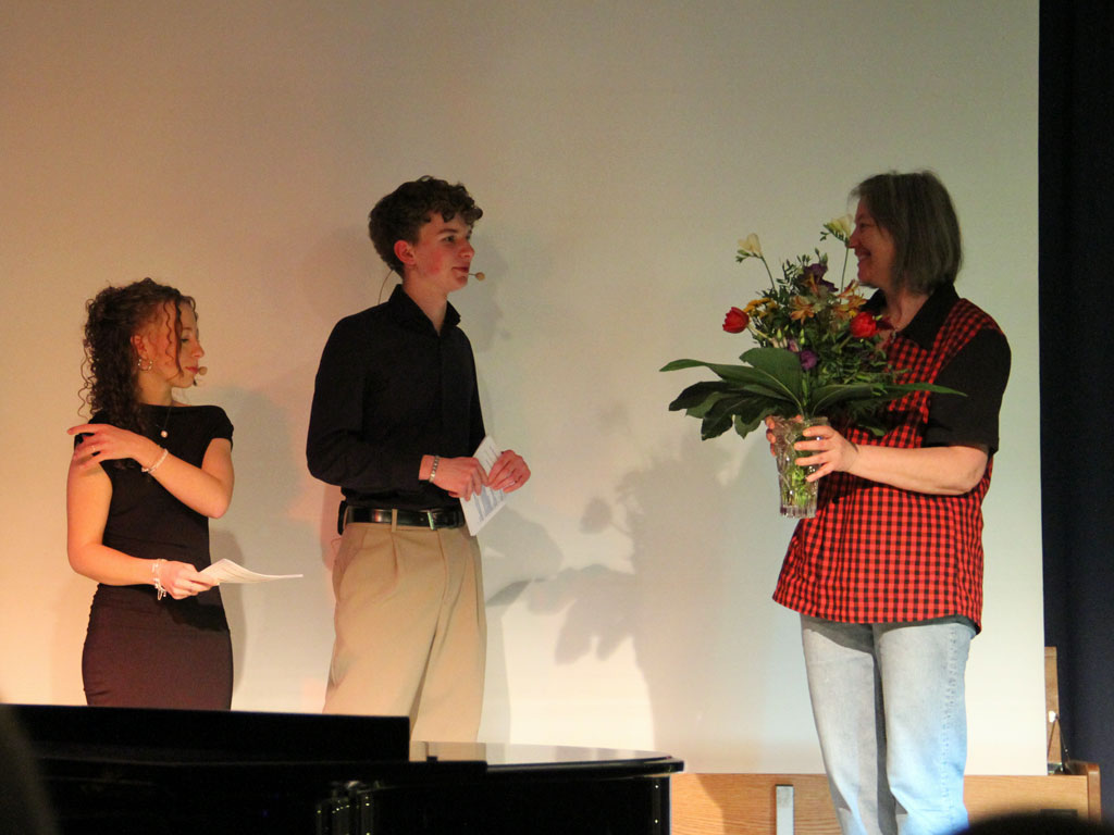 Organisiert und geplant hatte „Musik und Poesie“ ein Team rund um die Musiklehrerin Margret Fuhrmann, die zum Dank vom Moderatorenduo einen Blumenstrauß überreicht bekam. Das Publikum bedankte sich mit langem Applaus bevor es den Heimweg antrat zurück in die vertrauten vier Wände.