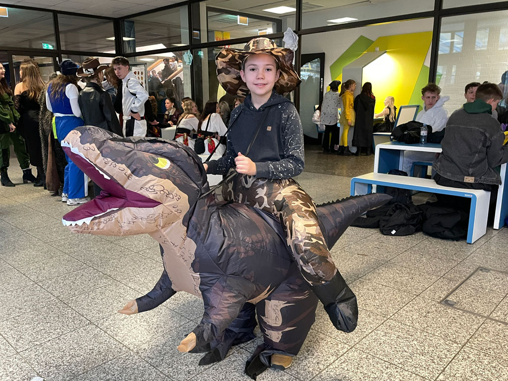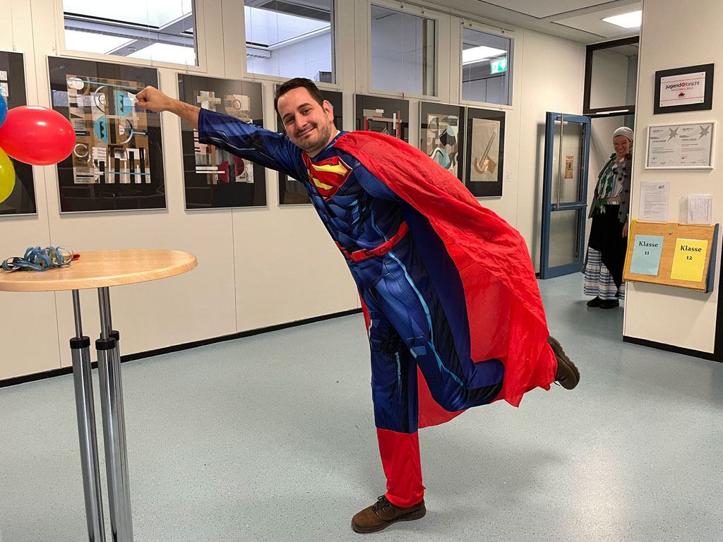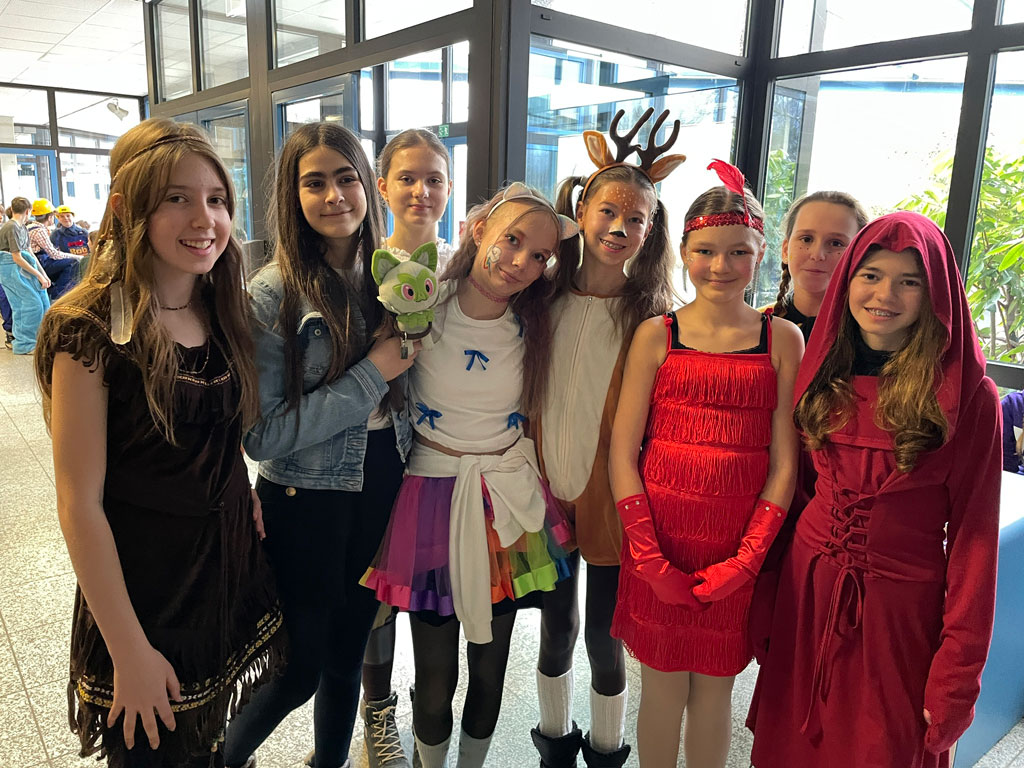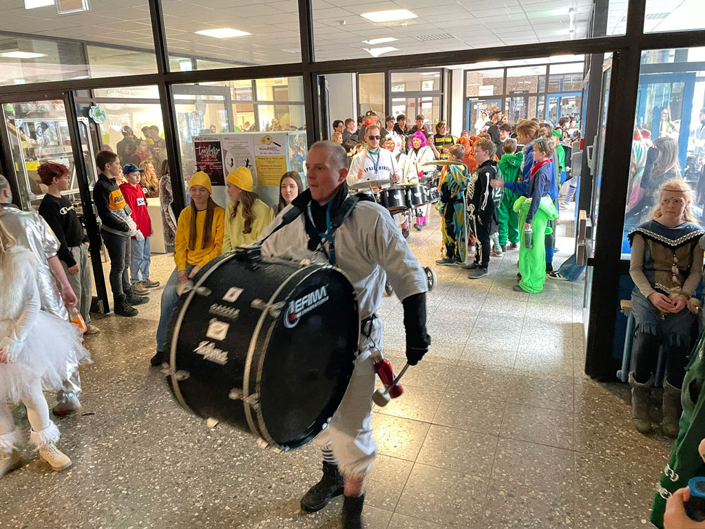 Bei lauter Musik und bunter Beleuchtung konnte man originelle Kostüme bestaunen. Neben den Schülerinnen und Schülern hatten sich auch viele Lehrkräfte verkleidet. So gab das Schulleitungsteam des Gymnasiums die Protagonisten aus Otfried Preußlers Räuber Hotzenplotz, mit Jürgen Pach als Wachtmeister Dimpfelmoser. Dass einige Schüler ihren Schulleiter mit Uniform und Pickelhaube für Otto von Bismarck hielten, spricht für den Geschichtsunterricht am Gymnasium.