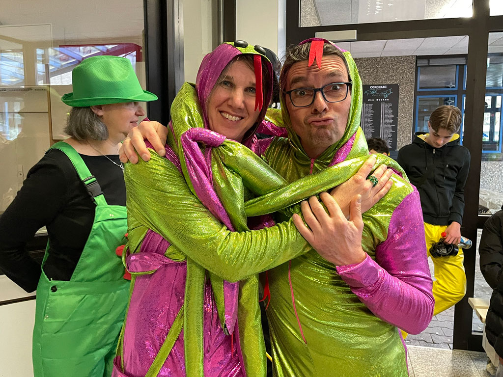 Doch schon vor der Schülerbefreiung durch die Narrenzunft „Deichelmaus“ und die Guggenmusik „Spoachinger Bächles-Hupfer“ war an Unterricht nicht mehr zu denken. Nur in den ersten beiden Stunden drückten die Gymnasiasten die Schulbank. Danach trafen sie sich mit ihren Lehrerinnen und Lehrern zur großen Fasnachtsparty in der Aula.