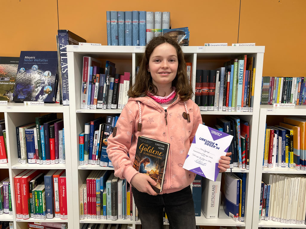 Als bekennender Fantasy-Fan las die Sechstklässlerin aus dem Buch „Die goldene Schreibmaschine“ von Carsten Henn. Zudem musste sie einen ihr unbekannten Text vortragen und konnte mit beidem die Jury überzeugen.